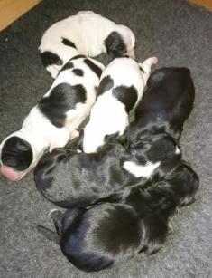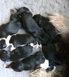 Så kom der hvalpe i huset efter hele to år uden. Det er sååååå dejligt. Po-Nya gjorde det så fint, og syv skønne hvalpe fem hanner og to tæver blev født på 2½ time, - - aldeles flot gået søde Po-Nya!